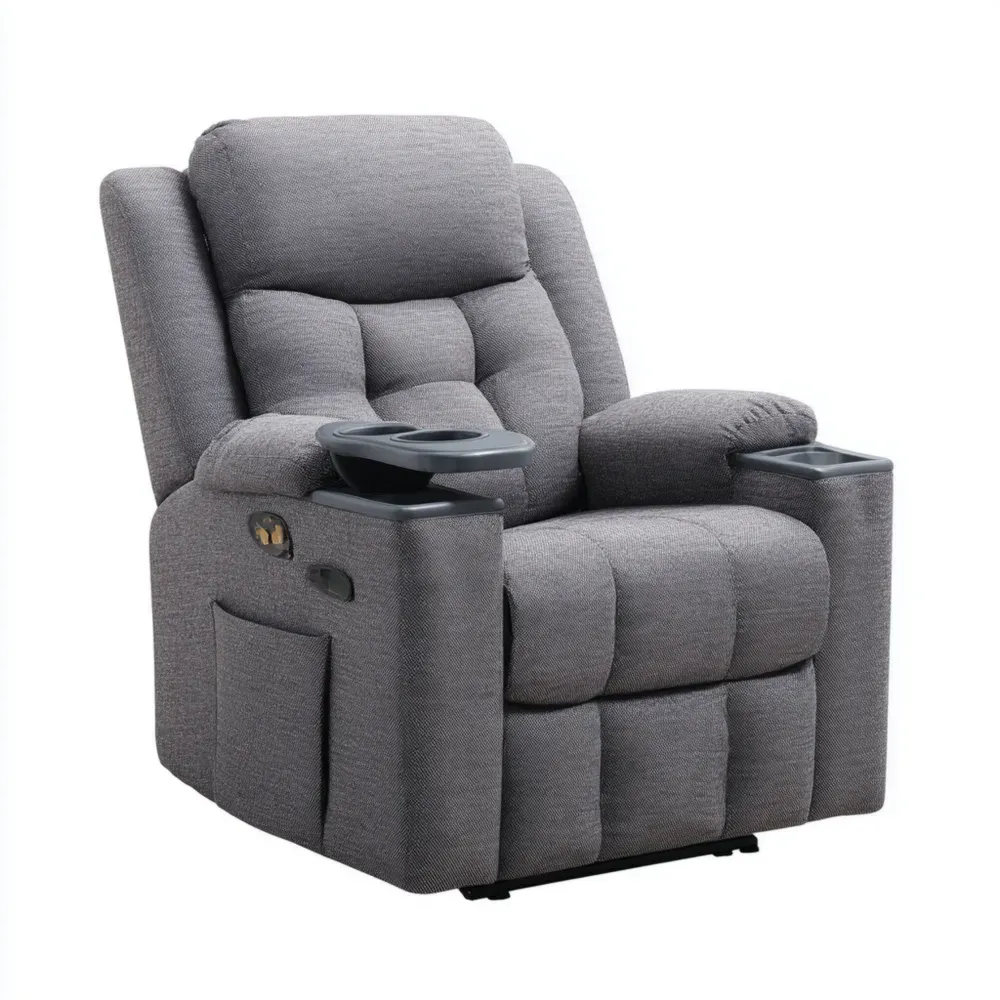 Liegesessel Textil Grau mit Getränkehaltern